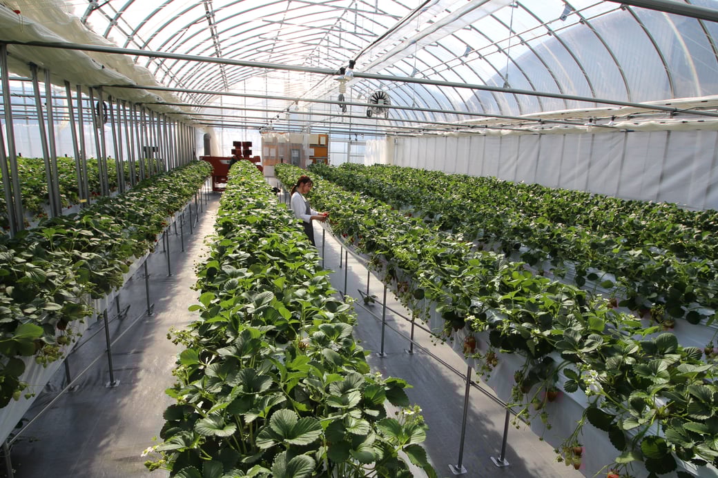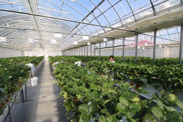 舞鶴市内の喧騒から離れた所にグランベリーファームのハウスはあります。そのハウスでは、春先のような暖かさを再現し、大切にいちごを育てています。